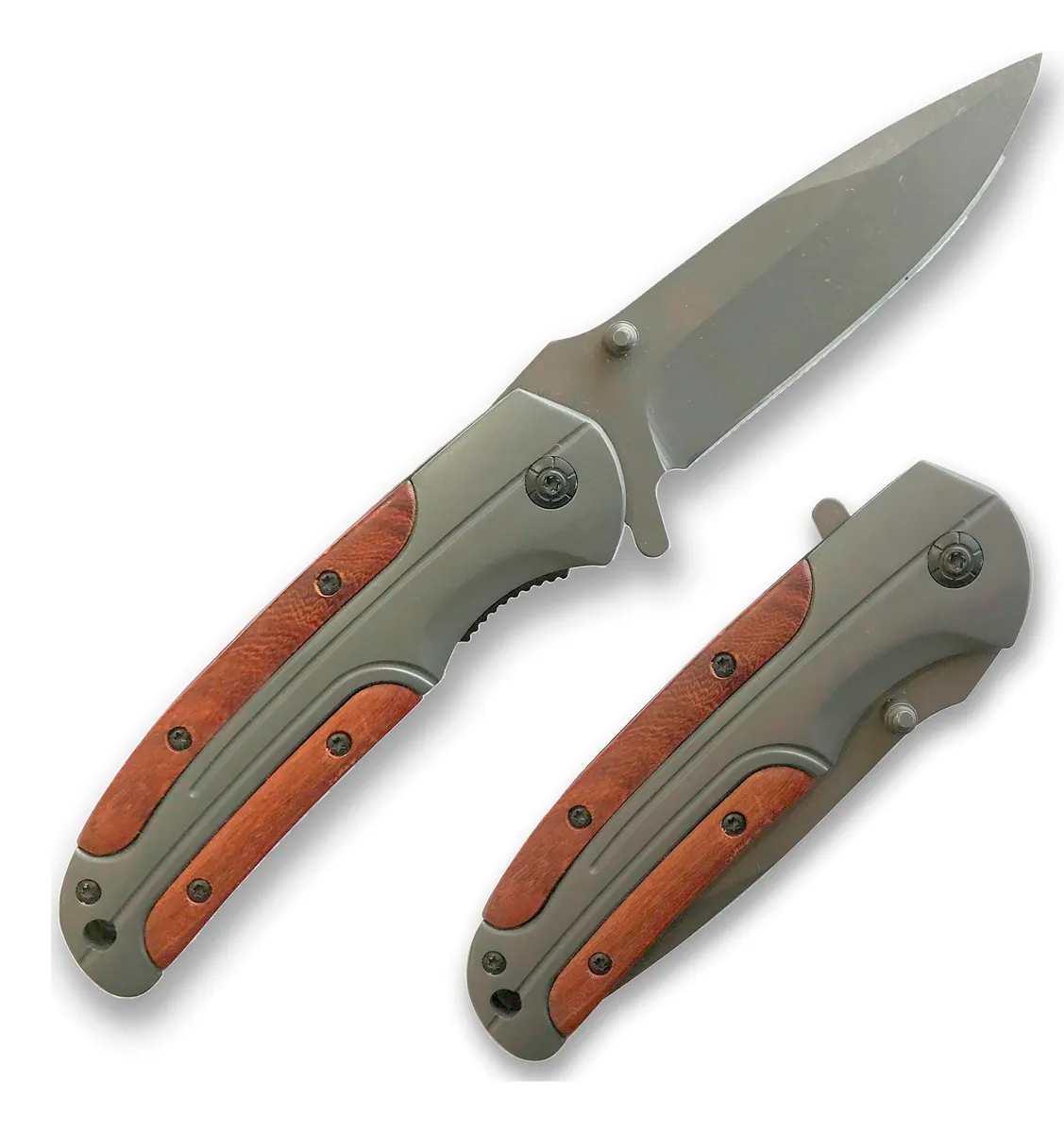 La navaja táctica A 6 de apertura rápida Hunter es la herramienta perfecta para los entusiastas del aire libre y la supervivencia. Con un largo total de 20.5 cm y un diseño compacto de 11.5 cm cuando está cerrada, es fácil de transportar y almacenar. Su hoja de 9 cm, fabricada en acero inoxidable 440, garantiza durabilidad y resistencia al desgaste. El mango combina metal y madera, ofreciendo un agarre cómodo y elegante. Además, cuenta con un ajuste de precisión que asegura un funcionamiento óptimo. Esta navaja incluye dos herramientas esenciales: la hoja y una hebilla, lo que la convierte en un accesorio versátil. Aunque no incluye estuche, su diseño robusto y la traba de seguridad proporcionan tranquilidad al usarla. Ideal para quienes buscan calidad y funcionalidad en un solo producto, la navaja A 6 Hunter es una elección confiable para cualquier aventura.