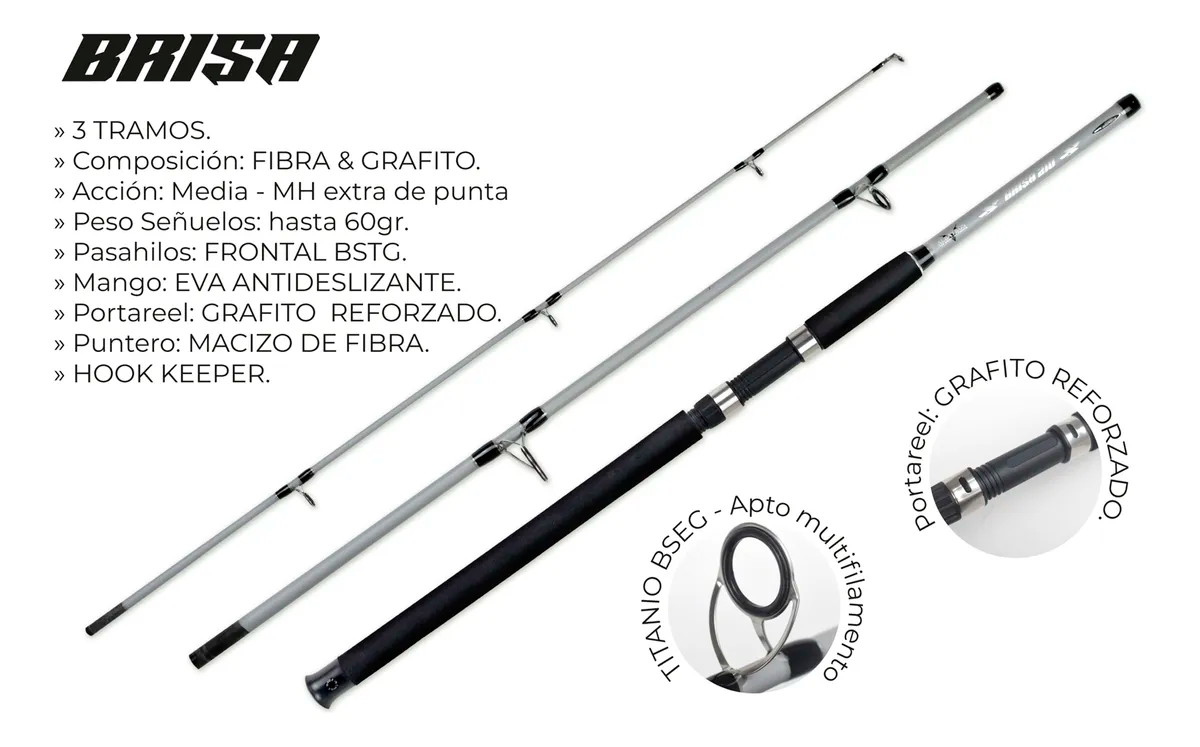 La caña Brisa es ideal para quienes practican spinning y buscan una herramienta confiable para pesca variada, con buen control y comodidad de uso.
