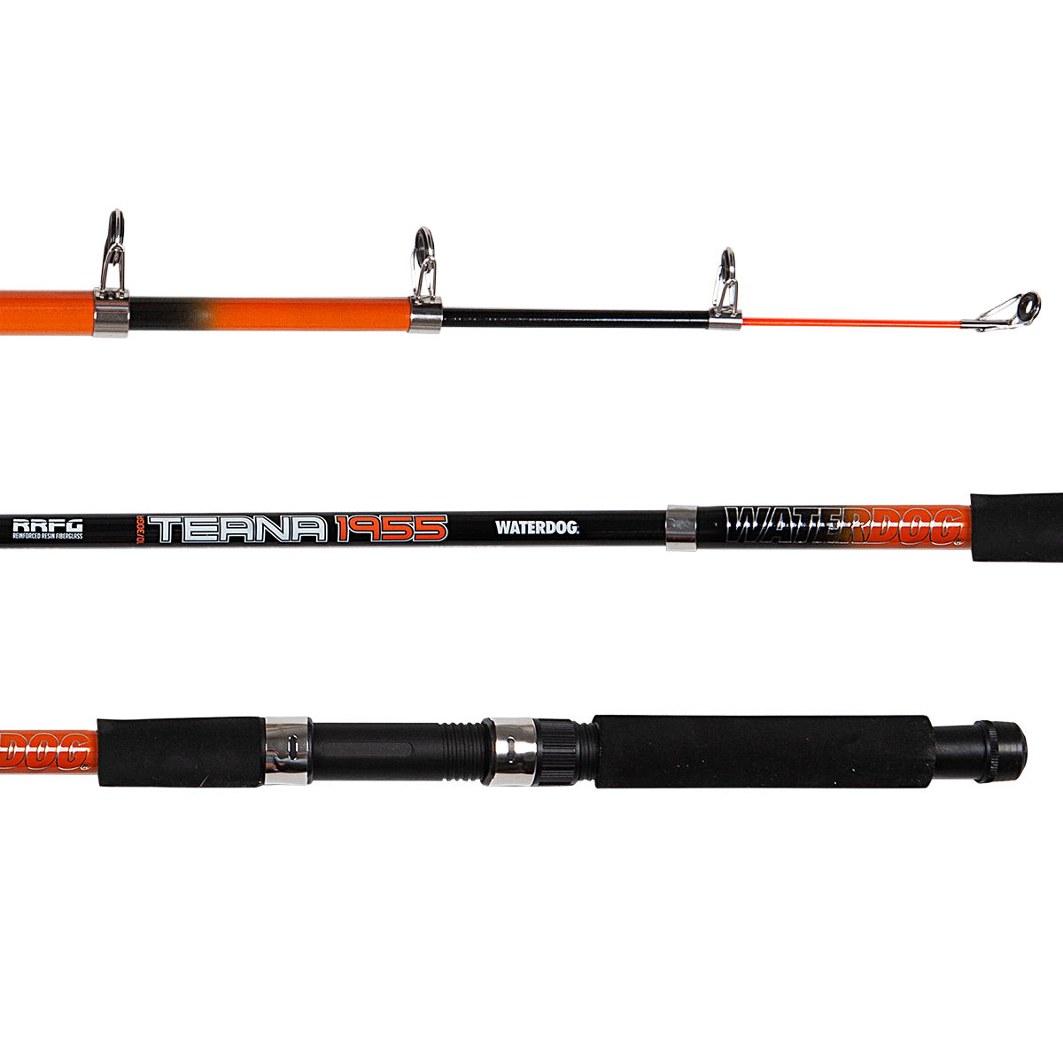 Caña telescópica Waterdog Teana. Modalidad de pesca: Variada. Composición: FIBRA DE VIDRIO. Medida: 2,40 m. Para plomada: 10 a 30 g. Pasahilos: Cerámica Porta Reel: a Rosca Empuñadura: Polímero termoplástico antideslizante Sugerida para: Pejerrey - Trucha
